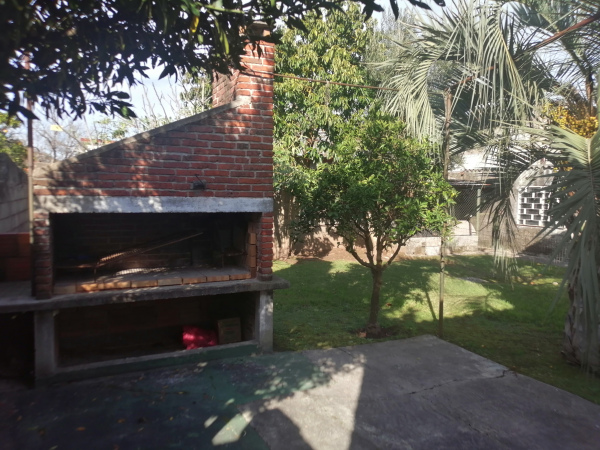 Amplio fondo con parrillero y árboles frutales, todo en buen estado de conservación.